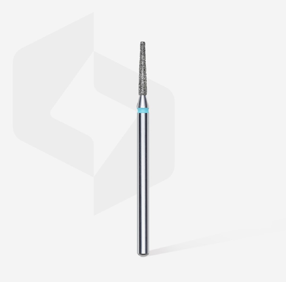 Fresa de forma conica, abrasivo azul. Se utiliza para trabajar cutícula . Tamaño 1.6mm / 10mm